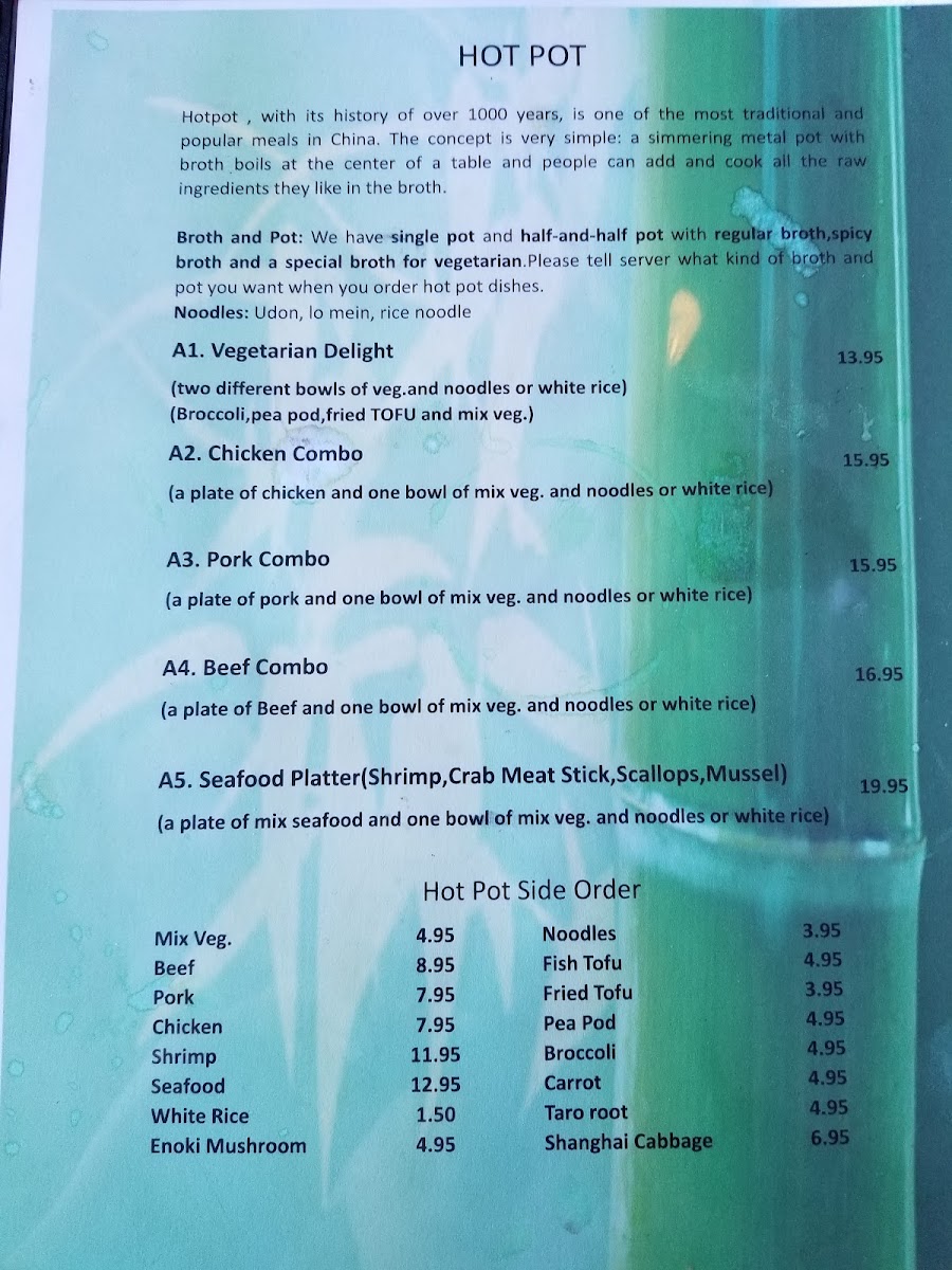 Welcome to Pink Bamboo Hot Pot Cafe, your new culinary haven located at 128 Penhallow St, Portsmouth, NH. This cozy spot is a must-visit for hot pot enthusiasts and newcomers alike. The menu boasts a variety of authentic Chinese hot pot options, featuring fresh vegetables and an array of proteins, including tender beef and succulent chicken.